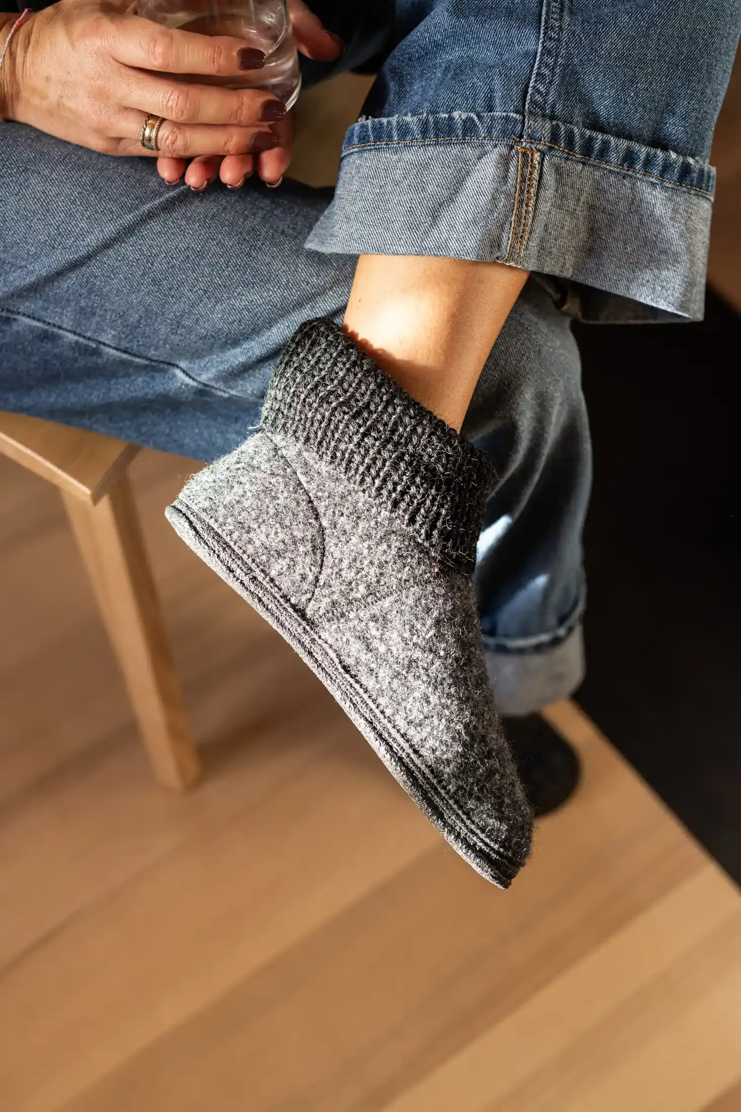 Wool Venture High Hüttenschuhe aus unserem patentierten innovativen dualknyt® Walkstoff für Damen und Herren. Bei dieser neuartigen Stricktechnik verarbeiten wir zwei Farben zu einem unverwüstlichen zweifärbigen Walkstoff. Die naturub® Naturkautschuksohle ist rutschfest und gibt natürlichen Halt bei jedem Schritt. Die Innensohle ist für zusätzlichen Tragekomfort mit einer gepolsterten Soft-Schaum Sohle ausgestattet. Der Einstieg des Wollhausschuhs ist mir einem Rippbündchen eingefasst und ein Gottstein Leder-Logo ziert den Einstieg des Hausschuhs zusätzlich. Sowohl Walkstoff als auch die Laufsohle werden in unserer Manufaktur in Tirol gefertigt.